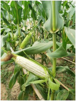 白甜糯玉米单交种,生育期73-85天,株型直立,株高220cm左右,穗位约85cm,穗长20.5cm左右、穗粗5.1cm左右、穗行数14-16行,甜糯玉米,产量高,皮薄无渣,糯性足,糯中带甜,品质好。