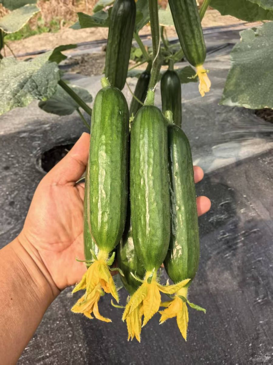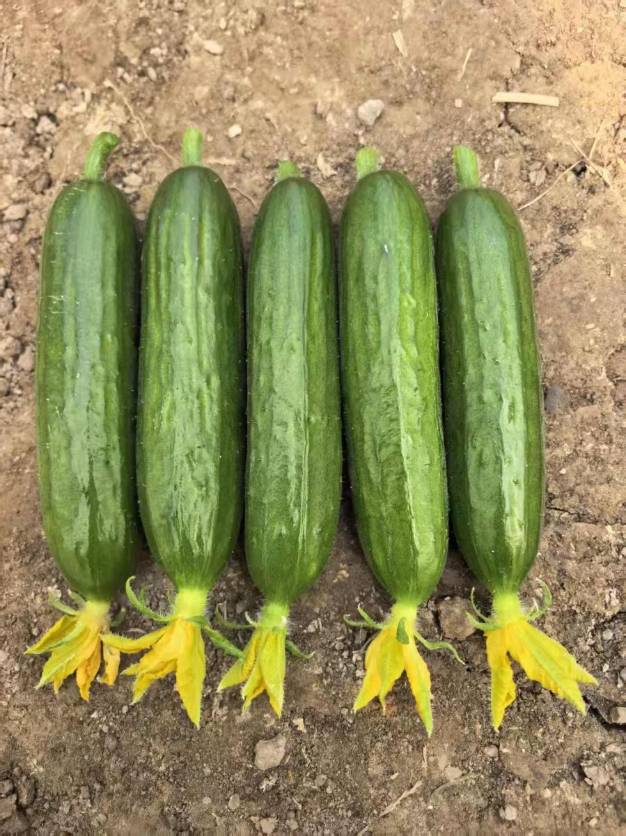 杂交一代口感型水果黄瓜类型,连续坐果能力强;皮色深绿美观,油亮有光泽,果实圆柱型,顺直匀称,果型整齐一致,商品率高,适采期果长12厘米左右;口感脆甜爽口,瓜味浓郁。科学管理条件下亩产3000公斤以上。