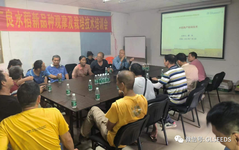 7月1日,正值中国共产党成立102周年之际,2023年早造广良水稻新品种观摩及栽培技术培训会在广良三水农场顺利举行。此次水稻新品种观摩及种植技术培训会由大塘镇农业农村办公室主办,由广良三水分公司承办。来自大塘镇农办相关负责人、广良三水农场相关负责人以及大塘镇水稻种植大户主体代表等30余人参加了会议。